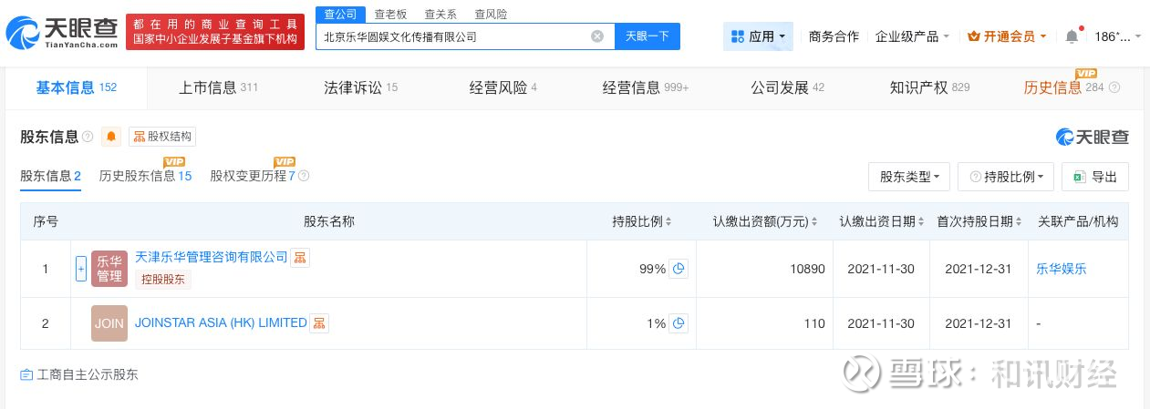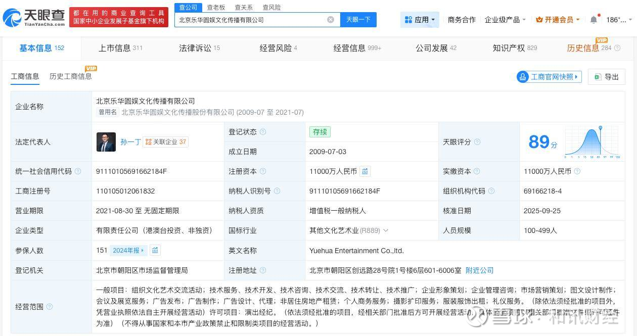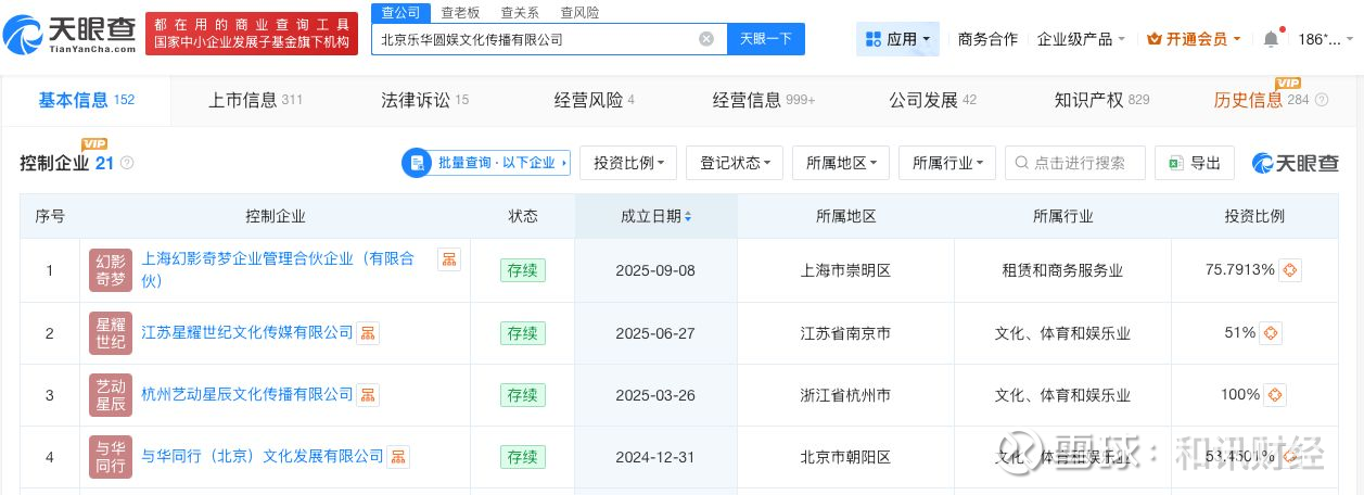 天眼查App显示,乐华娱乐关联公司北京乐华圆娱文化传播有限公司成立于2009年7月,法定代表人为孙一丁,注册资本1.1亿人民币,由天津乐华管理咨询有限公司、JOINSTAR ASIA (HK) LIMITED共同持股。知识产权信息显示,该公司近期密集登记“大卫歪耳兔”“大卫小熊”“赛车竹叶青蛇logo”“YH TOYS”等多款作品著作权。对外投资信息显示,该公司对外投资11家企业,去年成立了上海幻影奇梦企业管理合伙企业(有限合伙)、江苏星耀世纪文化传媒有限公司等多家新公司。