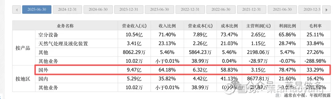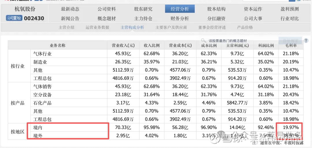 再看杭氧,虽然同一地区毛利比福斯达高,但海外业务占比太少了。