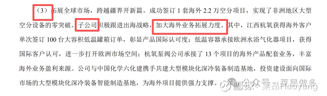 而杭氧股份对待出海只是在阶段性的重点经营工作第3条提了下...