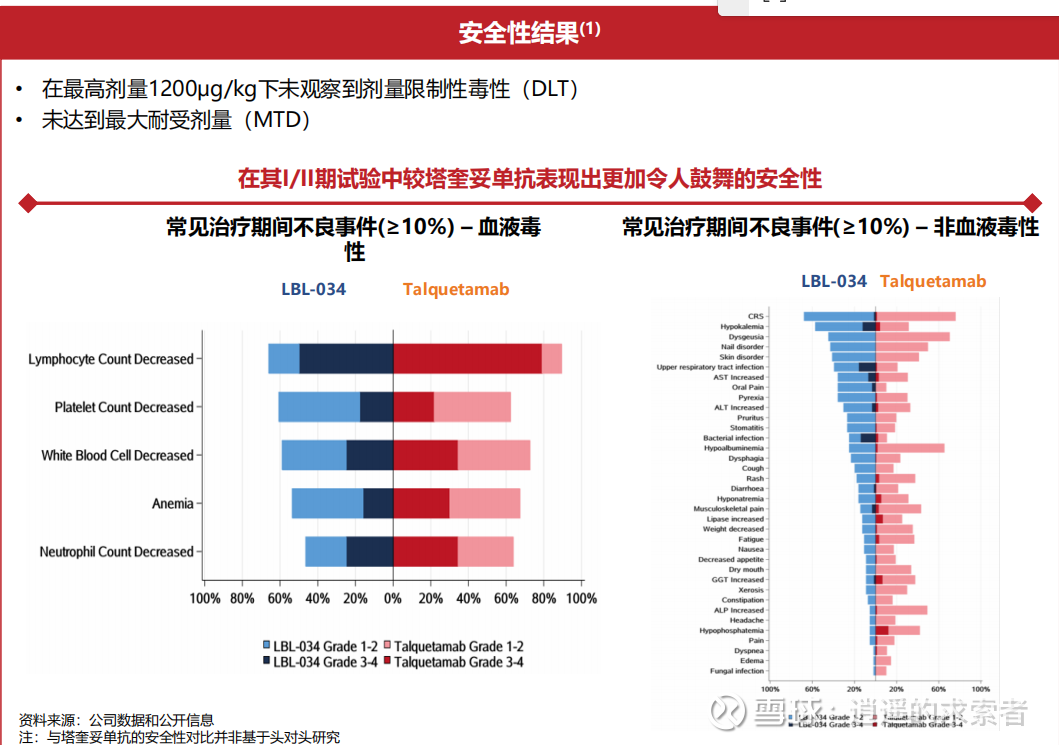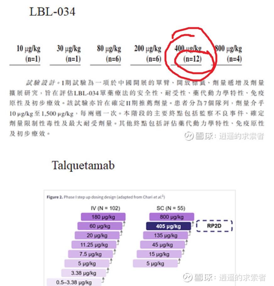 IPO时,对034最关心的就是问题就只有一个:RP2D剂量到底定多少,2个月前,在维立志博管线梳理(4)-034之一就说过,034最初的剂量拓展看着像是直接参考的强生的塔奎妥RP2D,但400μg的有效性虽然打塔奎妥没问题,但打强生在研三抗药物JNJ-79635322(JNJ-5322)就不够看了,这个三抗安全性很差,而034竟然未发生三级不良,这种情况下不往上推剂量简直是暴殄天物。