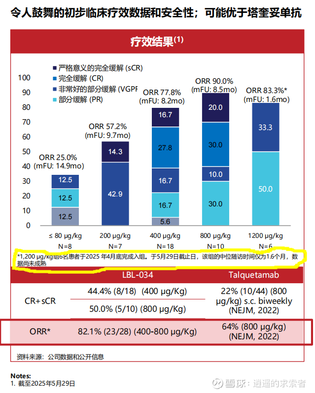 塔奎托的cr率是35%(中报给的数据是22%),而034随访时间推进,疗效不断提升,800μg的cr率已经攀升到73%,已经是cart的水准了。