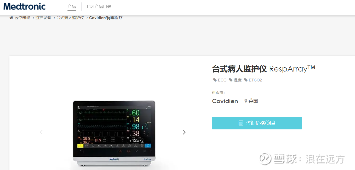 由于这款监护仪跟理邦以往产品系列命名完全不同,之前的监护仪名称是如im、iX、iV、elite V、X等,而且通常在拿证前或拿证后1-2周内就会发布新品宣传。但这次理邦没有一点宣传信息,我就百度搜索了一下这款监护仪型号,结果只有美敦力的RespArray™监护仪,美敦力官网也有该监护仪介绍。