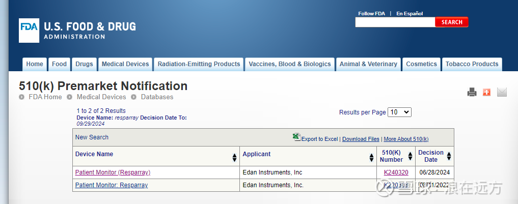 1、理邦FDA注册Resparray监护仪的官方文件:网页链接