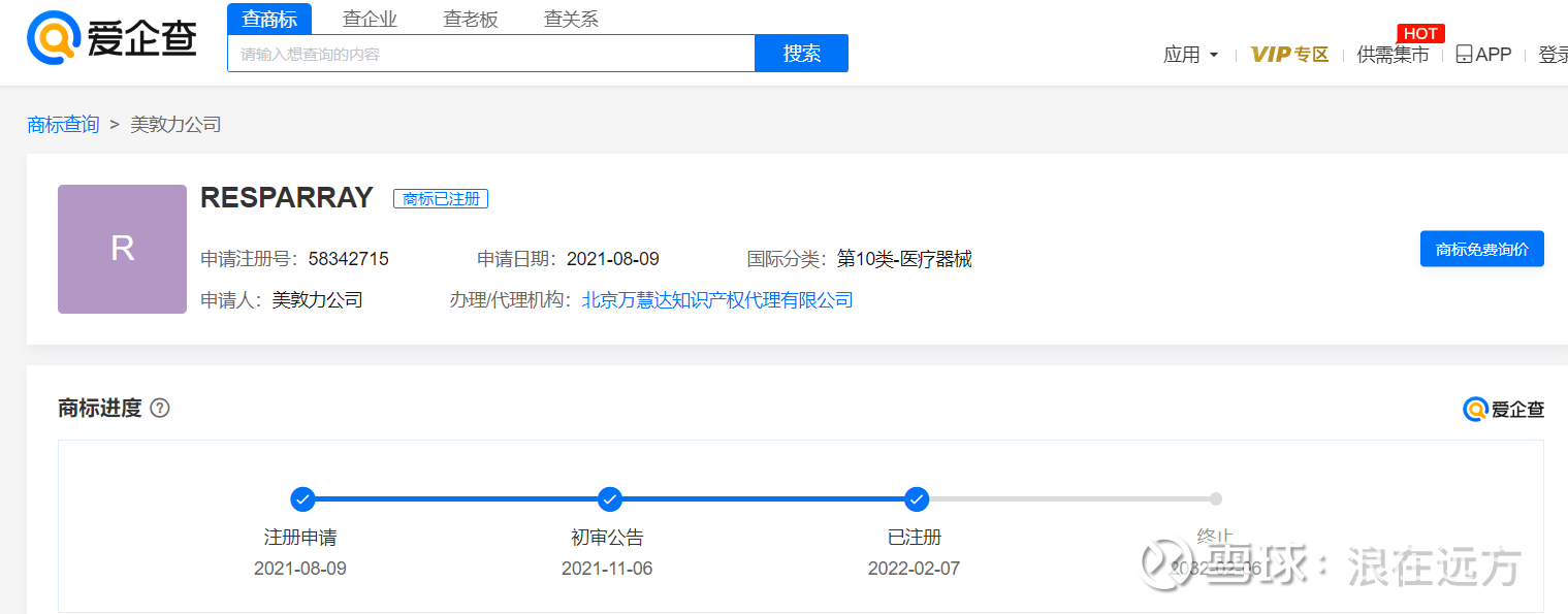 到此,我还是觉得大概率是重名了,又搜了一下谷歌和微信,公开信息显示美敦力在2022年9月初就宣布拿到这款名为RespArray监护仪的FDA注册,在国内美敦力也注册了商标。