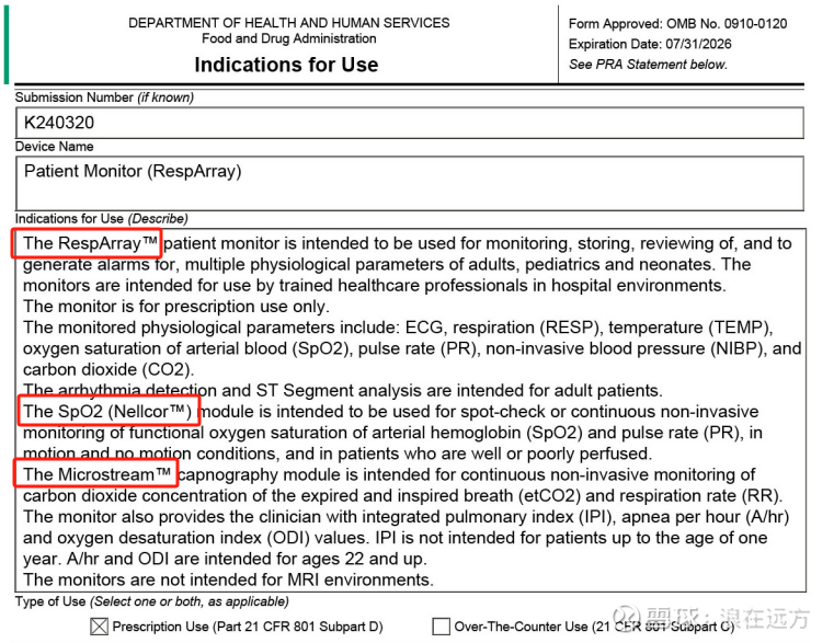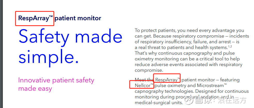 上图是理邦2024年6月拿证的FDA下载文件,里面的设备使用说明里直接出现了美敦力RespArray™商标,而且该监护仪的两个模块Nellcor™和Microstream™也是美敦力旗下的产品。