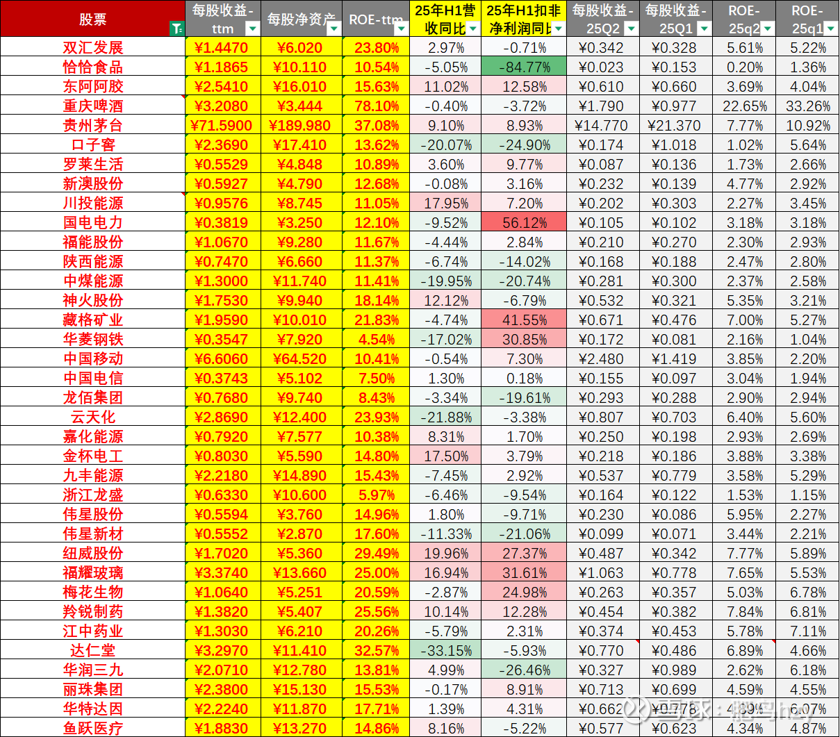 仓位超过1%的股票18支,因为市值波动、分红排序有所变化