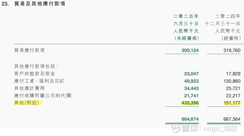 图中【其他(附注)】:包含有关增值税,相关附加税和滞纳金的税项拨备。2025H1拨备4.35亿元,2024年拨备1.51亿元;相关附加税及滞纳金计入当期损益[其他一般经营开支]项下,[其他一般经营开支]:2025H1增加约1.45亿元。2024全年增加人民币约7,280万元。