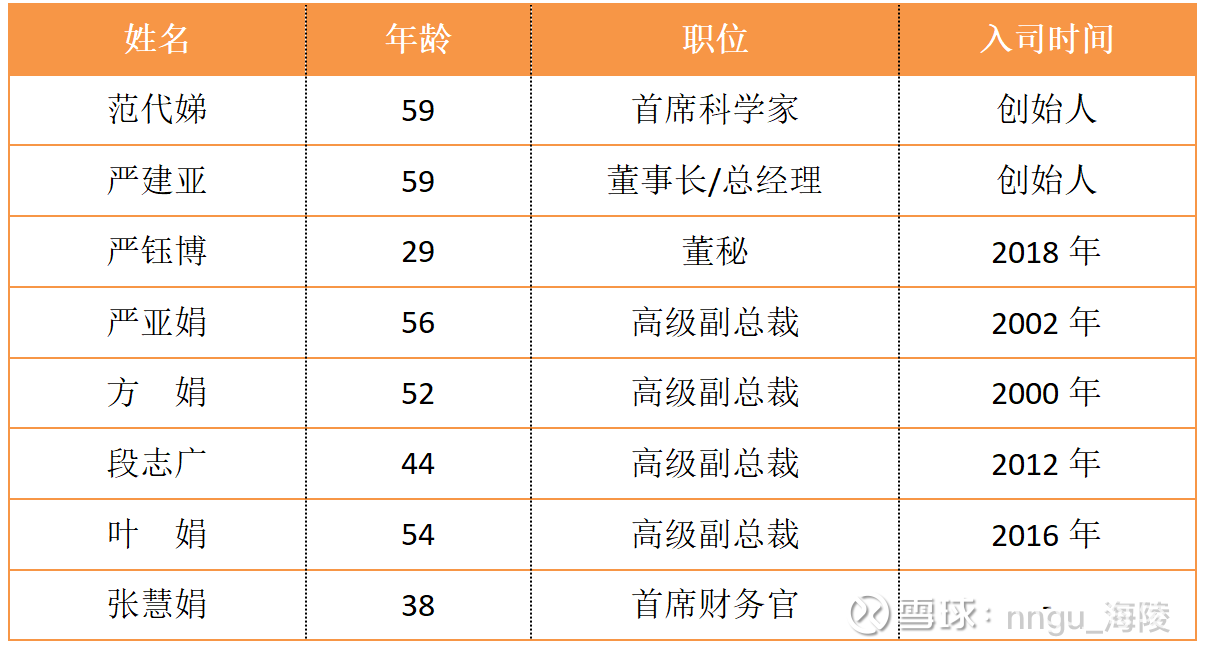 公司由范代娣教授夫妇实际控制,二人的女儿,董事长妹妹,范教授的学生均是公司核心管理层成员,团队稳定性高,缺点是缺少不同的声音,尤其是缺少带领公司走向国际市场,经验丰富的管理层成员。