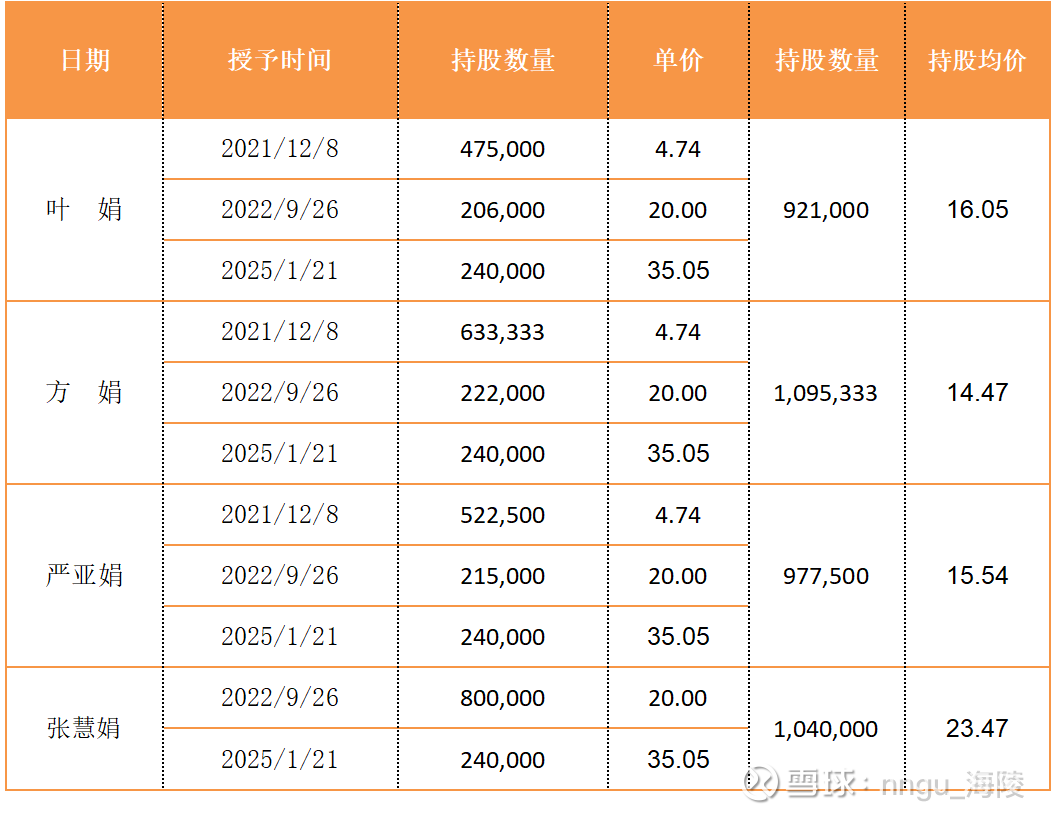 截至2025年H1,实控人严建亚夫妇持有公司约5.9亿股,占比55.13%,其他核心高管/董事的持股时间、数量和均价见下表。