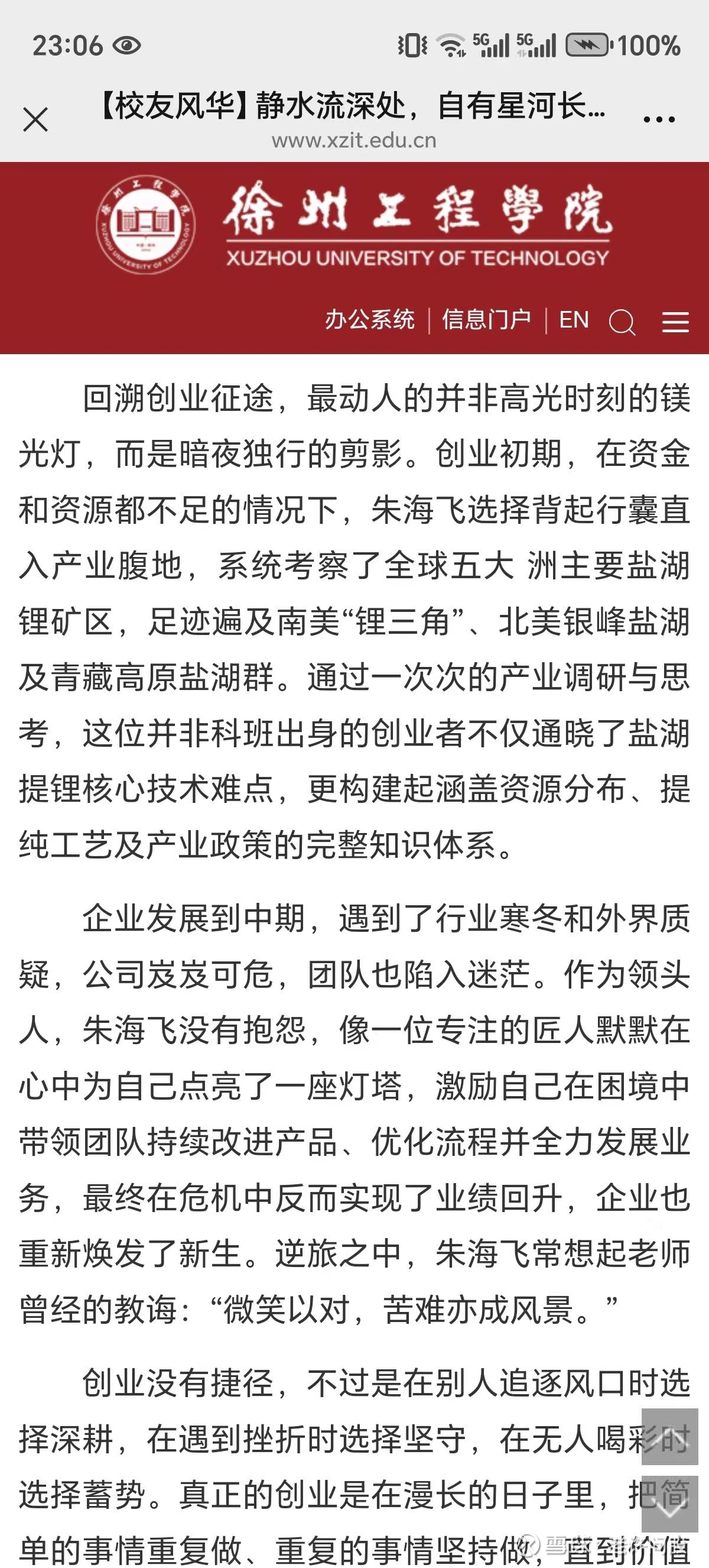 东晶后续的主营业务大概率是转向新能源方向的了。第一,他自己在主动立这样的人设。今年5月27日,东晶公告朱海飞来了,而朱海飞的母校也是在5月27日刊登了这样的文章: