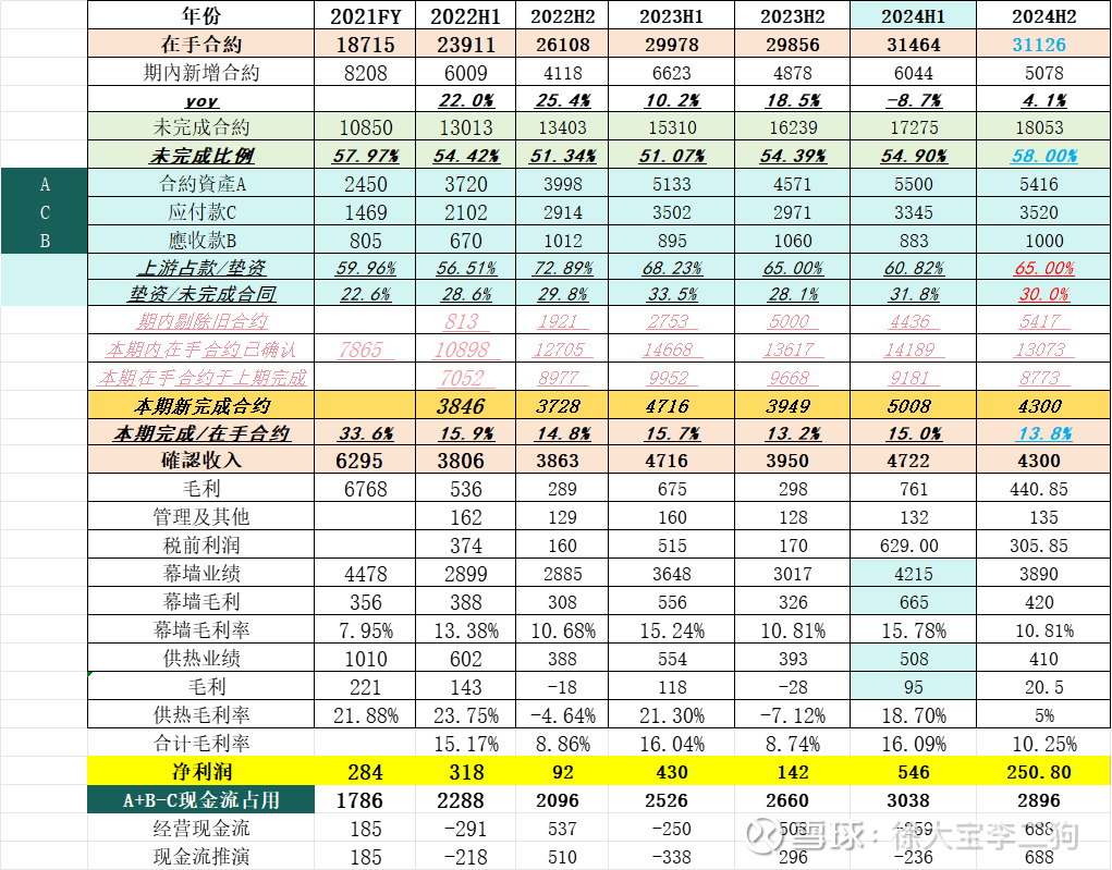 以此滚动计算,公司整体垫资/未完成合约是30%。上半年略高,下半年略低。