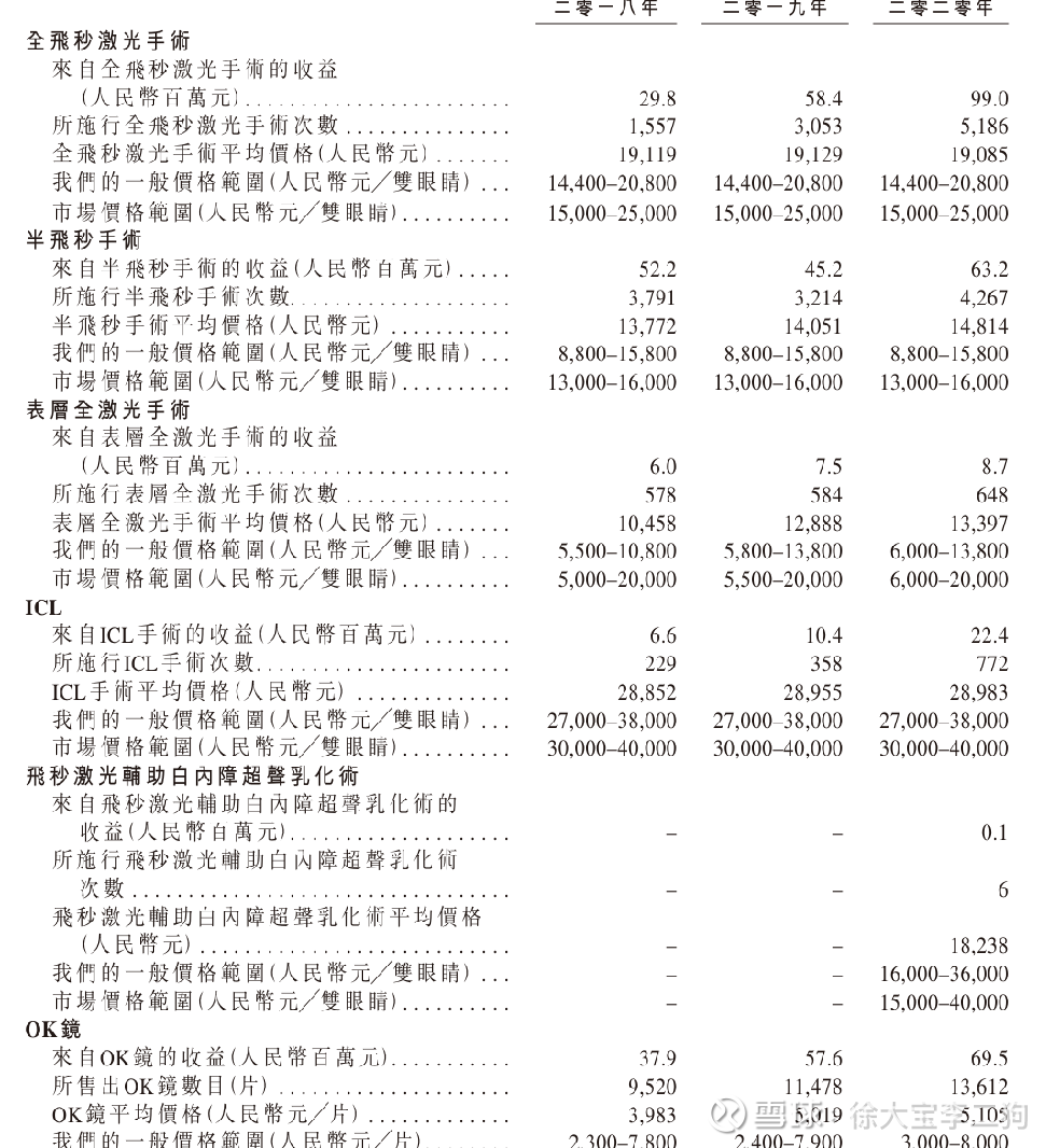 各大眼科,爱尔何氏华夏朝聚普瑞,业务都一样,几乎同质.从门诊数/收入来看,基本也都一样,毛利率大同小异.