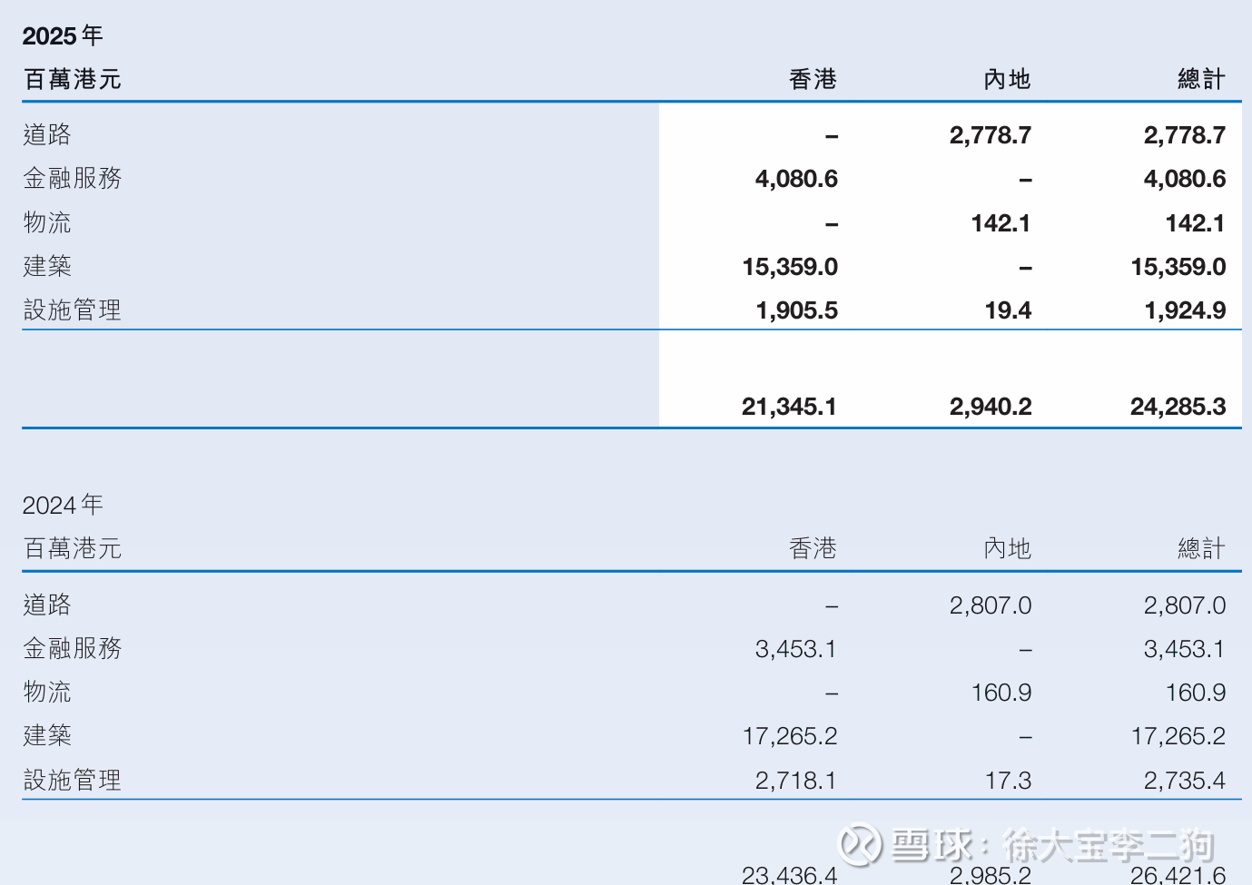 交银预测如下,按增速计,保险>设施>高速>物流=建筑.