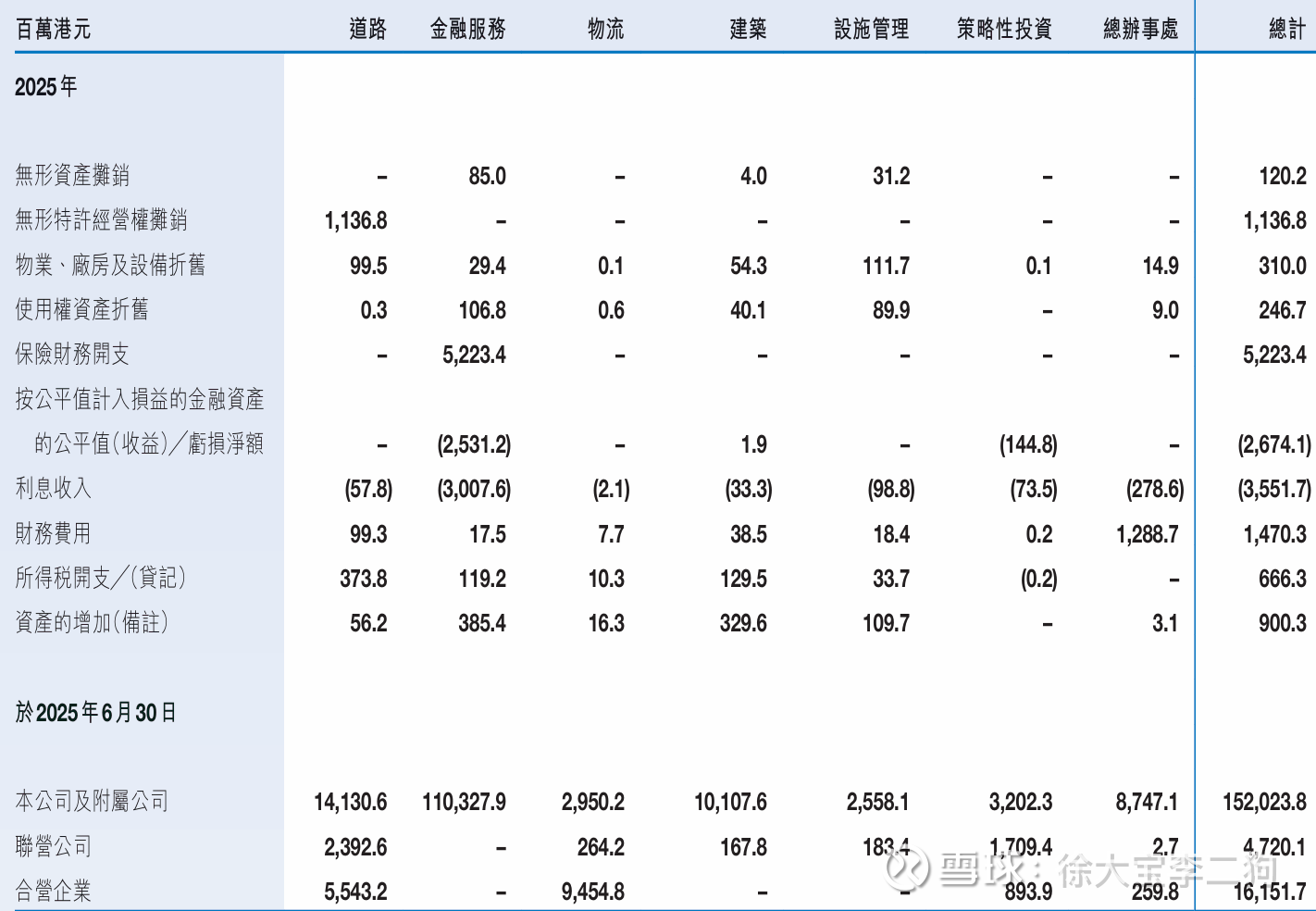 联营和合营公司都是高速路和物流.
