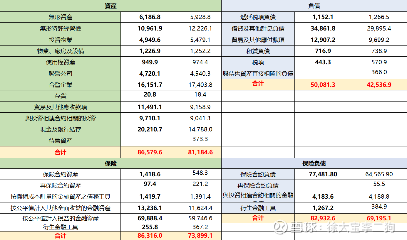 资产负债情况,将保险重列