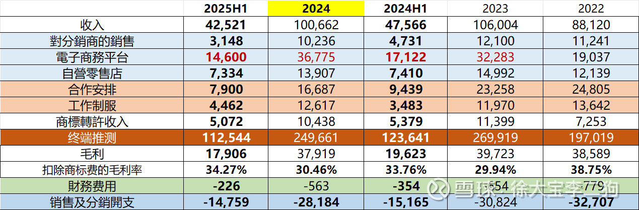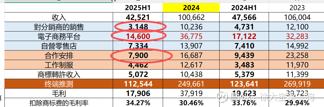 从25年H1看,毛利率过低已经太疼了,25H1确实是在砍低毛利的部分.加盟,分销,电商,都是低毛利.而自营,许可费和制服毛利应该略高,是稳的.