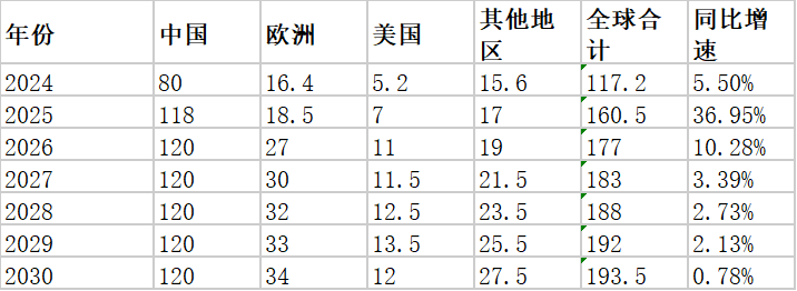 155每年要120GW,国内能确保不失速.欧美26-27从订单上看有一个爆发期.
