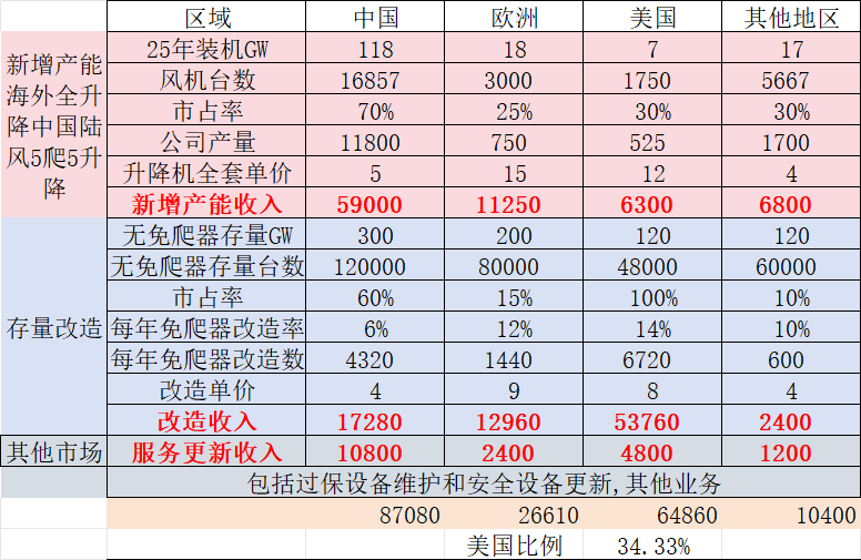 海外的大头是美国的存量老风机安装免爬器,这个海外没人干,市占率100%.这个存量大概120GW以上.每年15GW,5-7000台这样.这是各种数据猜测的结果.