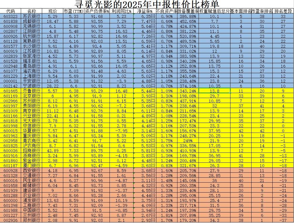 寻觅光影的2025年银行全行业性价比榜单