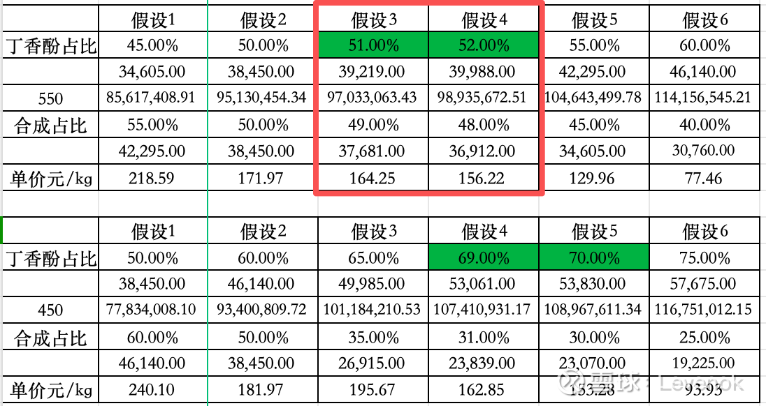 做了个假设条件拆分倒算,大概率是1月份丁香酚出货不到40吨(55万/吨)、合成出货37吨左右(16万/吨)