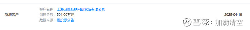 2025年4月19日中标上海卫星互联网研究院有限公司501万