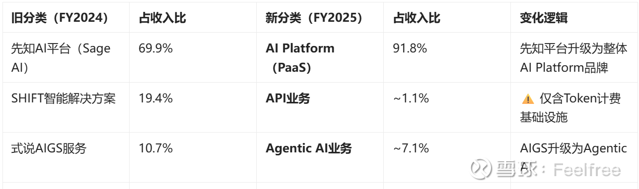 注:FY2024 SHIFT和AIGS合计约16亿元,FY2025 AI Platform增长到65.52亿,说明SHIFT+AIGS被重新归入AI Platform,同时该业务仍有32%的内生增长。