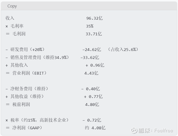 假设条件:1)收入保持35%增速;2)毛利率维持35%水平;3)研发费用参考25年增速,26年预估同比增长20%;4)其它费用率保持不变。
