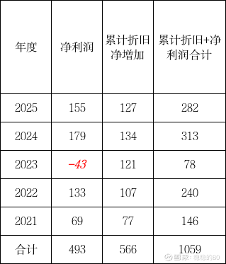 5.2021-2025年的累计折旧和净利润合计1059亿