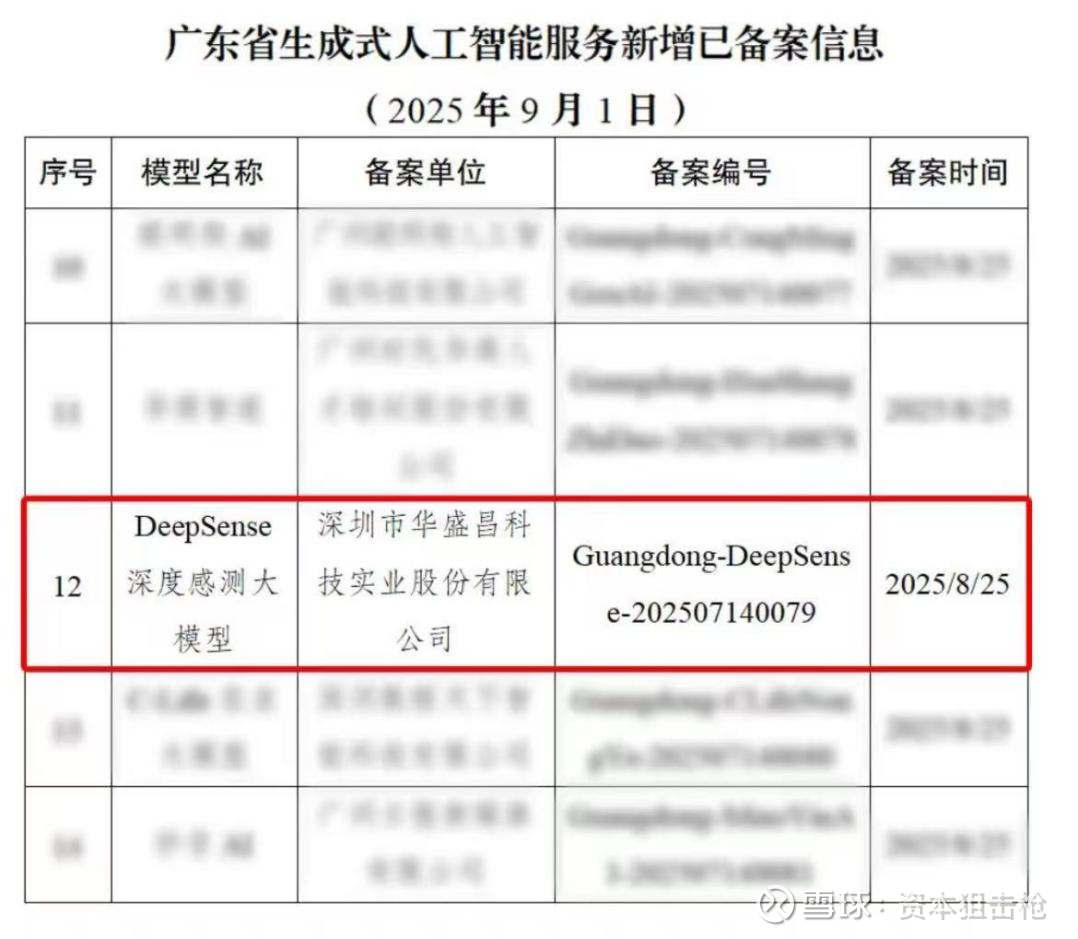 9月2日盘后,华盛昌(002980.SZ)发布重磅公告,公告其“DeepSense深度感测大模型”历经属地网信办初审、中央网信办终审及六大部委意见征询,已成功获批生成式人工智能服务备案,并将适时向用户开放内测。