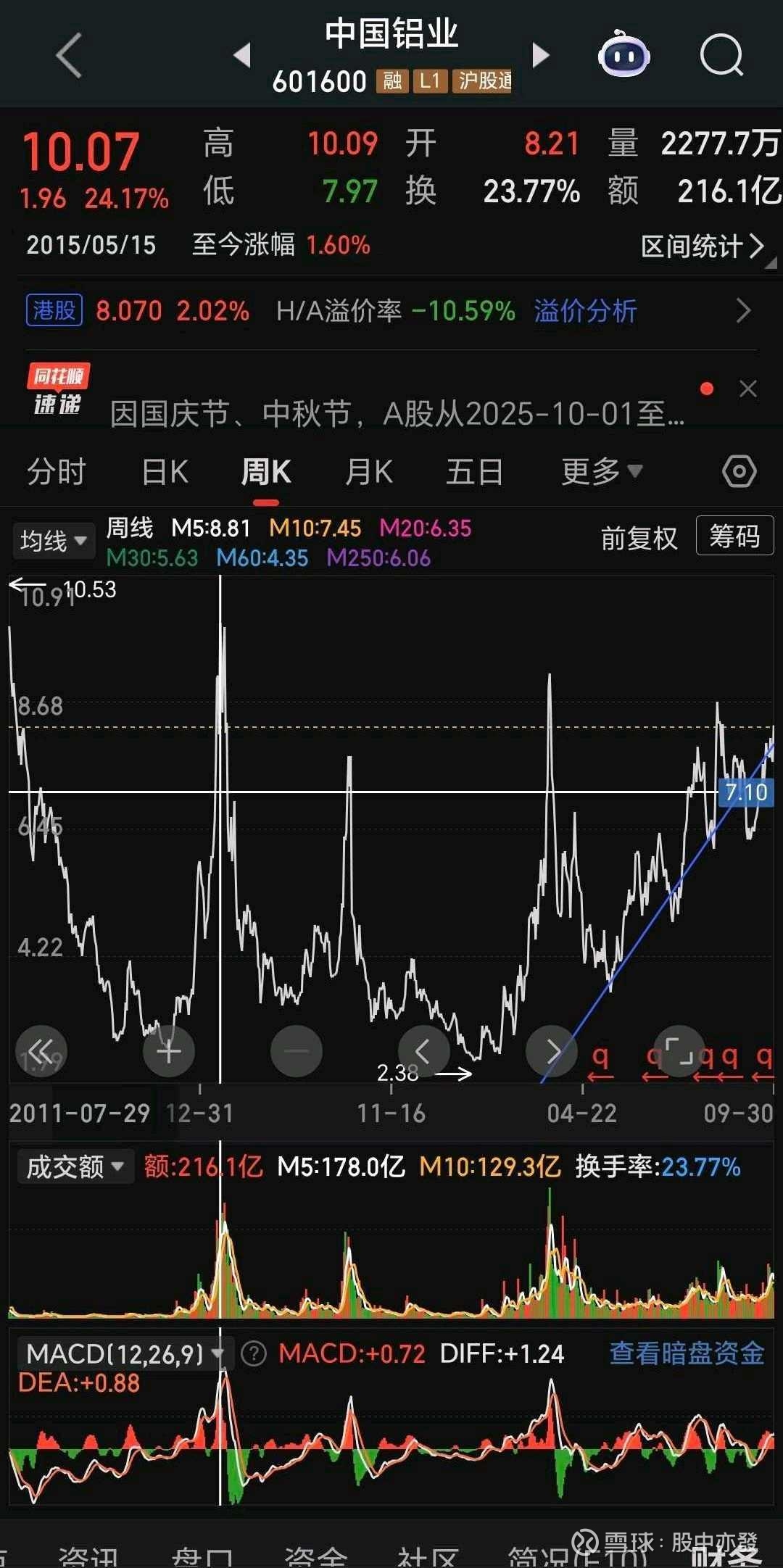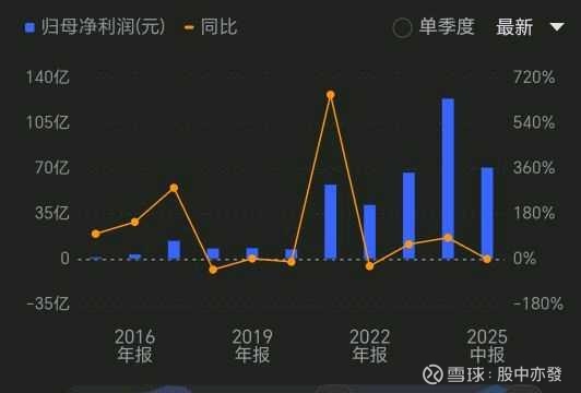 全面看多电解铝,最重要的就是便宜。有色的全面扩涨而铝还没怎么涨 还有铝矿企的股价滞后,以中国铝业为例:2017年14.13亿的利润股价最高涨到8元,2021年57.59亿最高涨到10元,2022年利润41.92亿,2023年利润66.89亿,2024年利润124亿,2025年上半年利润70.71亿。