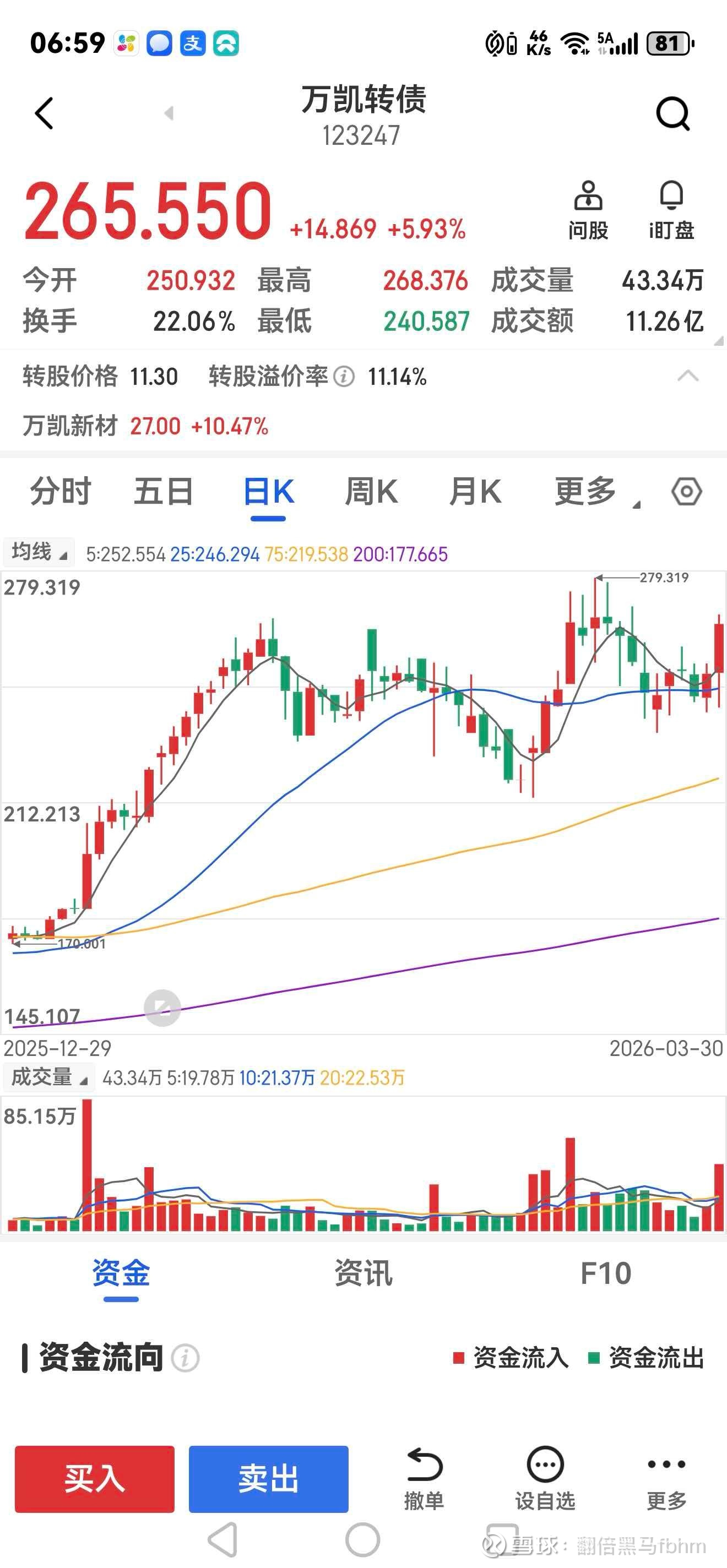 万凯转债:今天受到正股大涨10%以上的刺激,万凯转债也开始活跃。又是一个发财致富的机会。T+0交易不容易被量化割韭菜。今天开始加速有突破在即的机会。期待有暴利。