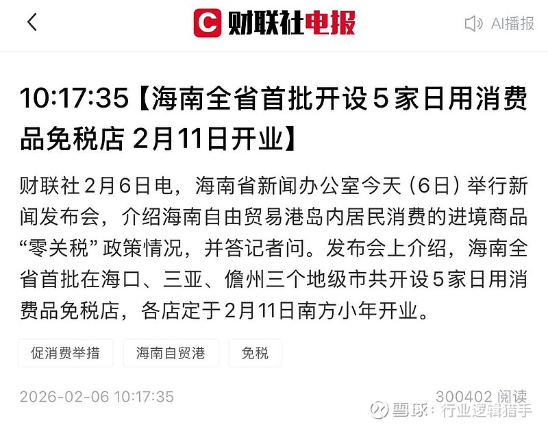 春节免税消费高峰+海南离岛客流回升,海南发展为岛内最大免税商之一埋伏空间还是比较大的