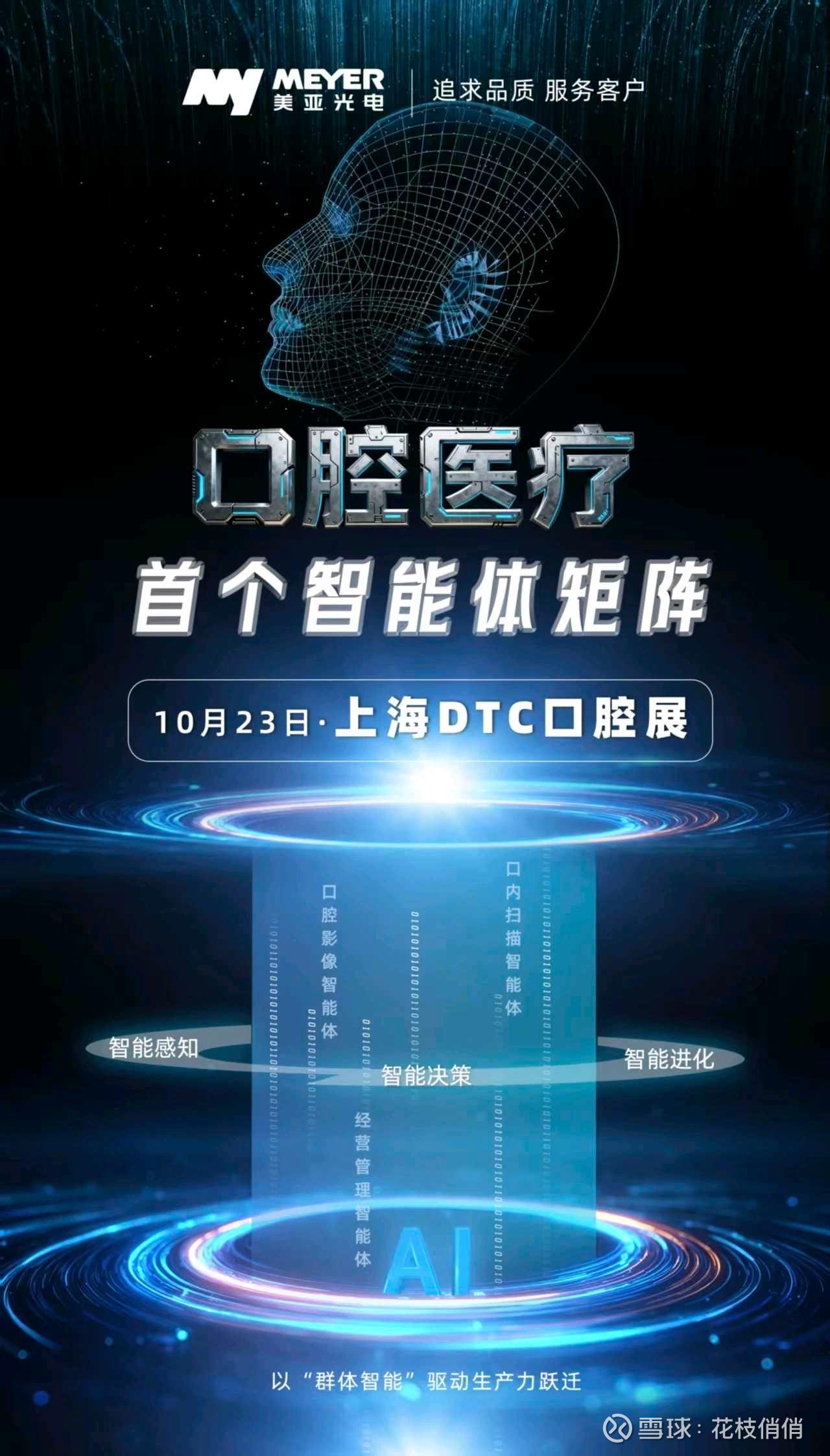 (配图:美亚光电“口腔医疗 首个智能体矩阵”上海DTC口腔展宣传图)