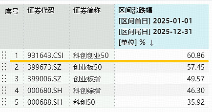 值得关注的是,百分百布局新质生产力方向的硬科技宽基——双创龙头ETF(588330)标的指数斩获“2025年宽基涨幅王”,年内累计上涨60.86%,大幅跑赢创业板50(57.45%)、创业板指(49.57%)、科创综指(46.30%)、科创50(35.92%)等主要宽基指数。