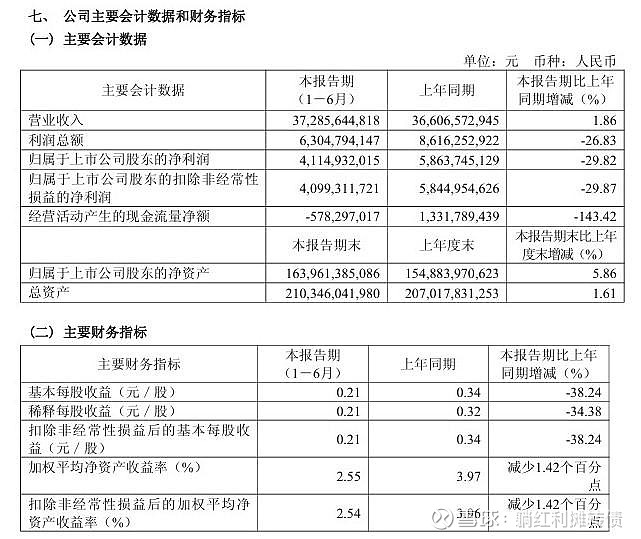 中期分红每股0.08元,相比去年0.13元的每股分红下降了不少,以当前每股6.43元的价格计算中分红收益率为1.24%,以当前业绩也就这样了,只是不知道年报时会不会提升分红比率。