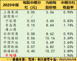 PS:渤海轮渡的中期分红收益率居然压过了海控?