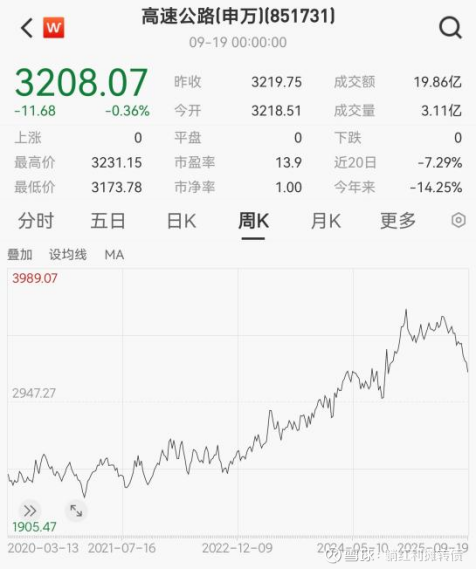 要说今年以来哪个板块表现最差,那高速一定是榜上有名的,代表整个板块的申万高速公路指数年内逆势大跌了14.25%,不过我觉得大部分理智的投资者应该能预料到这个情况,毕竟过去几年高估板块逆市大涨,如今逆势大跌也算是均值回归吧:
