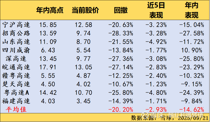 今年上半年不少高速公司的股价都出现了不小的泡沫,像宁沪的市净率一度超过了2倍、皖通和粤高速的估值甚至接近3倍PB,对于有收费年限限制、业绩潜在增速有限的高速板块而言这个估值确实也有些离谱了,所以下半年以来整个板块的下跌也算是一种价值回归,只不过这个回归来的比较惨烈,下图是个人关注的一些高速公司的股价变化数据;