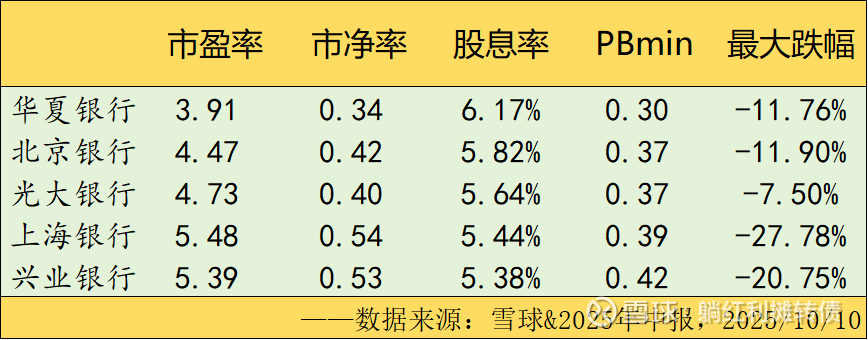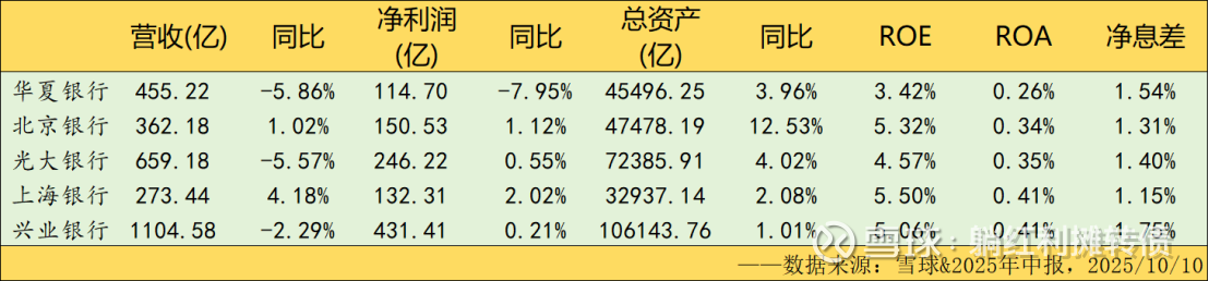 本文所提到的观点和数据仅代表个人的意见,所涉及标的不作推荐,据此买卖,风险自负。$兴业银行(SH601166)$ $北京银行(SH601169)$ $华夏银行(SH600015)$