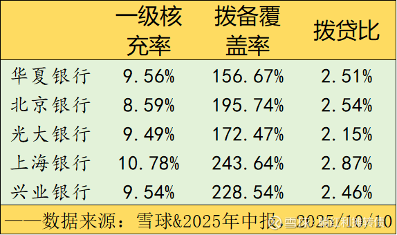从拨备和核充的数据看,上银算是挺不错的,兴业和华夏相对比较正常,光大核充还行但是拨备不足,北银拨备还行但是核充告急。