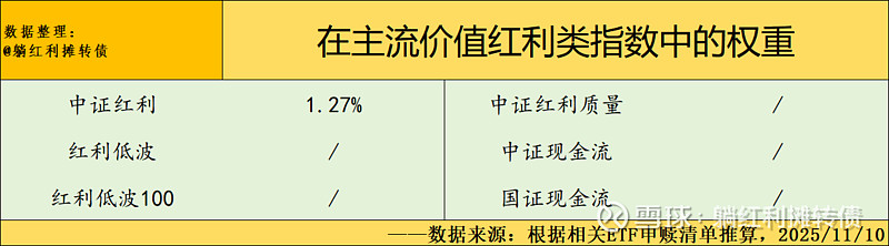最后再补一张海澜在主流价值红利指数中的权重数据汇总: