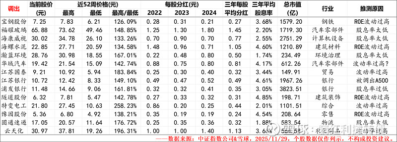 3、真正因为股息率过低被调出指数的情况反而比较少。