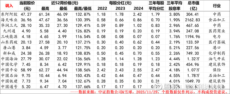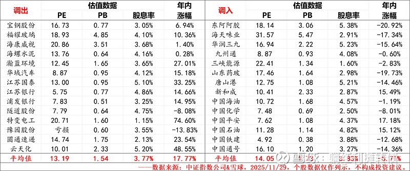 特别说明:1、数据来源于中证指数公司&雪球,2025/11/29,手工整理可能存在错漏,请自行甄别;