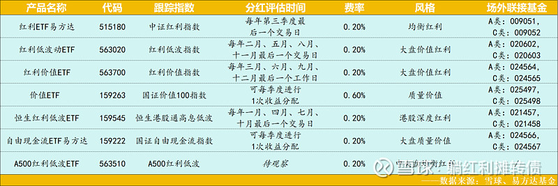 当前场内跟踪红利价值指数的产品仅有$红利价值ETF(563700)$一只,其管理费+托管费为0.20%,并在实际运营中严格做到了基金合同约定的季度评估分红,有意投资红利价值指数的朋友不妨关注起来。没有股票账户的朋友也可以考虑通过场外的联接基金(A类:024564,C类:024565)参与~$红利ETF易方达(SH515180)$ $红利低波动ETF(SH563020)$