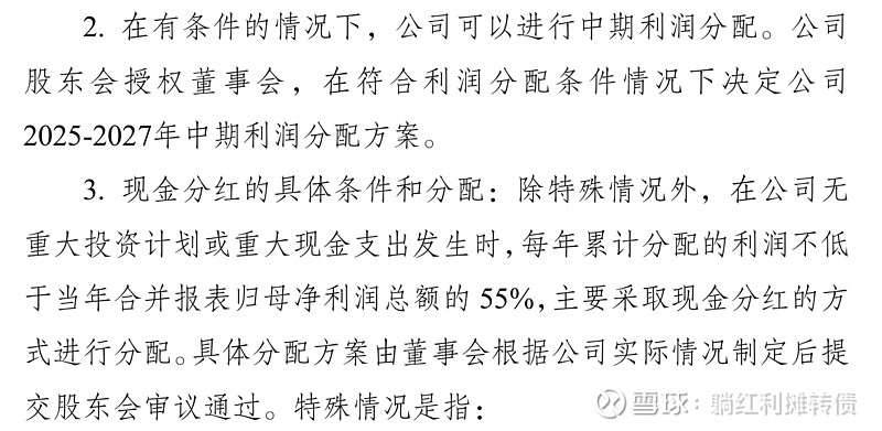 上周五(2/28)收盘后,京沪高铁公布了未来三年(2025-2027年)的股东分红回报规划,根据规划,京沪高铁在2025-2027年的分红比率不低于55%,详细信息如图: