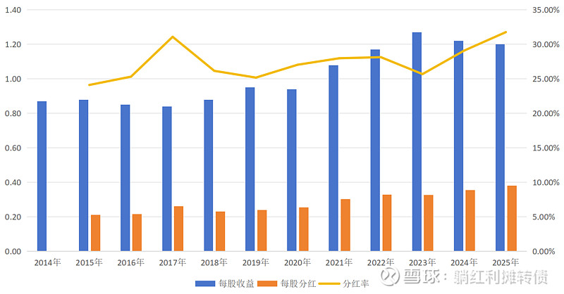从数据来看,中信银行年报分红预案公布的每股分红为0.193元,算上每股0.188元的中期分红,全年每股分红合计0.381元,以2025年1.20元的每股收益计算本次分红分派率达到了31.75%,以中信银行当前每股8.18元的价格计算中信银行当前的分红收益率为4.66%。