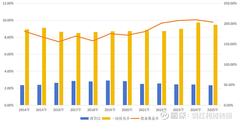 从拨备数据看,中信银行2025年的拨备数据相对稳定,拨备覆盖率同比下降582bps至203.61%,拨贷比同比小幅下降10bps至2.33%。