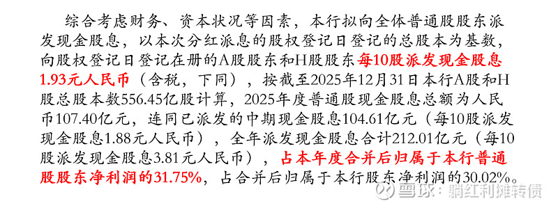 Hello 大家好呀,今天来聊聊中信银行的2025年年报分红预案,根据《中信银行股份有限公司2025年度利润分配方案公告》,中信银行2025年的分红安排如下: