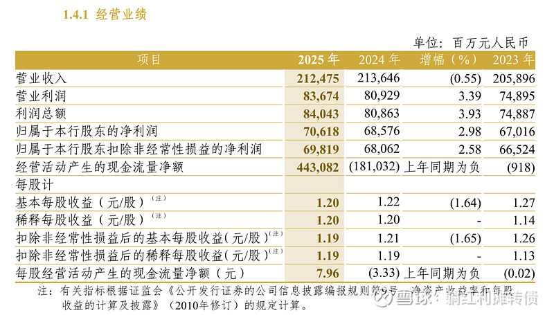 中信银行2025年营收2124.75亿元,同比微幅下降0.55%,归母净利润706.18亿元,同比增长2.98%,整体看中信银行的业绩相对稳定,接下来躺师傅从红利投资者关心的其他几个角度来聊聊中信银行2025年的年报业绩: