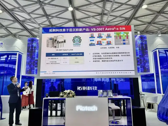#拓荆科技 集中发布了多款先进半导体设备,聚焦薄膜沉积与3D-IC先进封装领域。新一代原子层沉积设备VS-300T Astra-S SIN PEALD搭载4个反应腔,结构紧凑,具备高产能与优异的坪效比,可沉积高质量氮化硅薄膜,在均匀性、缺陷控制、台阶覆盖率等方面达到国际先进水平,适用于逻辑、存储等先进节点。